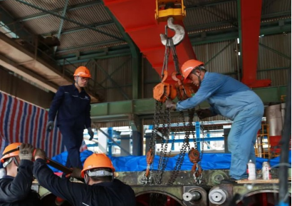 2021年9月25日上午8時18分,在浙江省諸暨市海亮有色智造園內,隨著施工單位——銅冠建安鋼構公司起重人員一