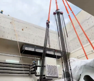 2022年9月8日,在華中科大附屬協和醫院金銀湖院區,人們利用吊車和大噸位手拉葫蘆成功將45噸重的質子放射治療系